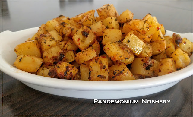 Once the potatoes are almost done, starting to crisp but not completely cooked, squeeze the lemon over the top and stir again. Continue roasting until the potatoes are cooked.